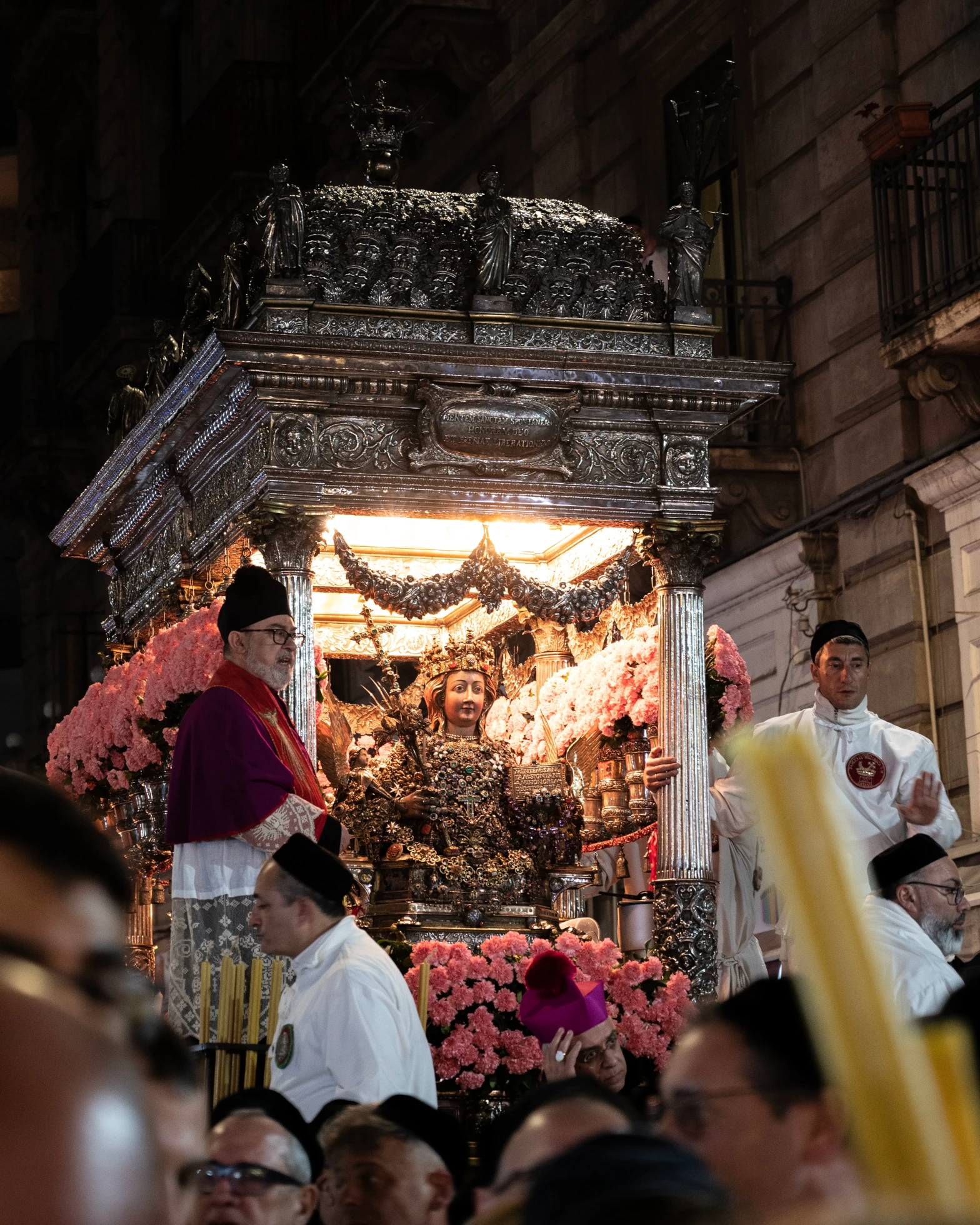 Fuochi d’artificio, candelore, bande in festa, concerti e, sopra ogni cosa, una solenne processione che abbraccia tutto il centro storico, con una folla di devoti vestiti di bianco al suo seguito: è la festa di Sant’Agata, la santa patrona di Catania, celebrata ogni anno dal 3 al 5 febbraio. Nota come una delle feste più partecipate anche a livello internazionale, viverla è come immergersi per più giorni nel cuore antico della città: rivivere una storia di fede, tradizione e anche folklore, dalle consuetudini ormai centenarie.